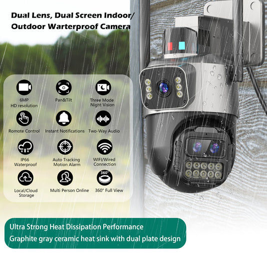 【Dual Lens Linkage】 Wireless Security Cameras Outdoor, 6MP WiFi PTZ Security Camera,360°View,IP66 Waterproof,Human Detection&Tracking,Light Alarm,Night Vision,24/7 Record